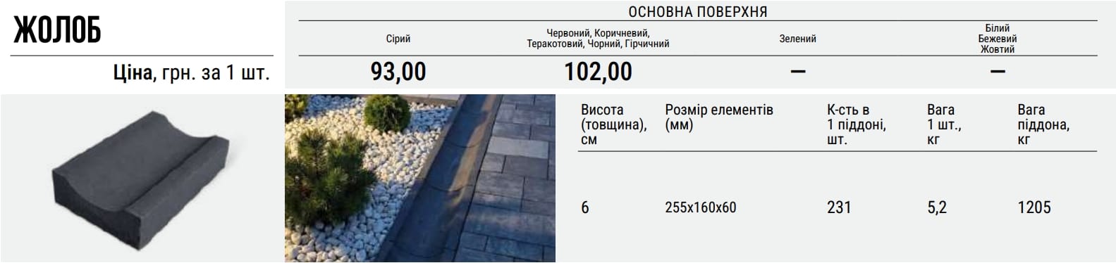 Жолоб використовується для забезпечення водовідведення дощової та талої води із облаштованої бруківкою ділянки.