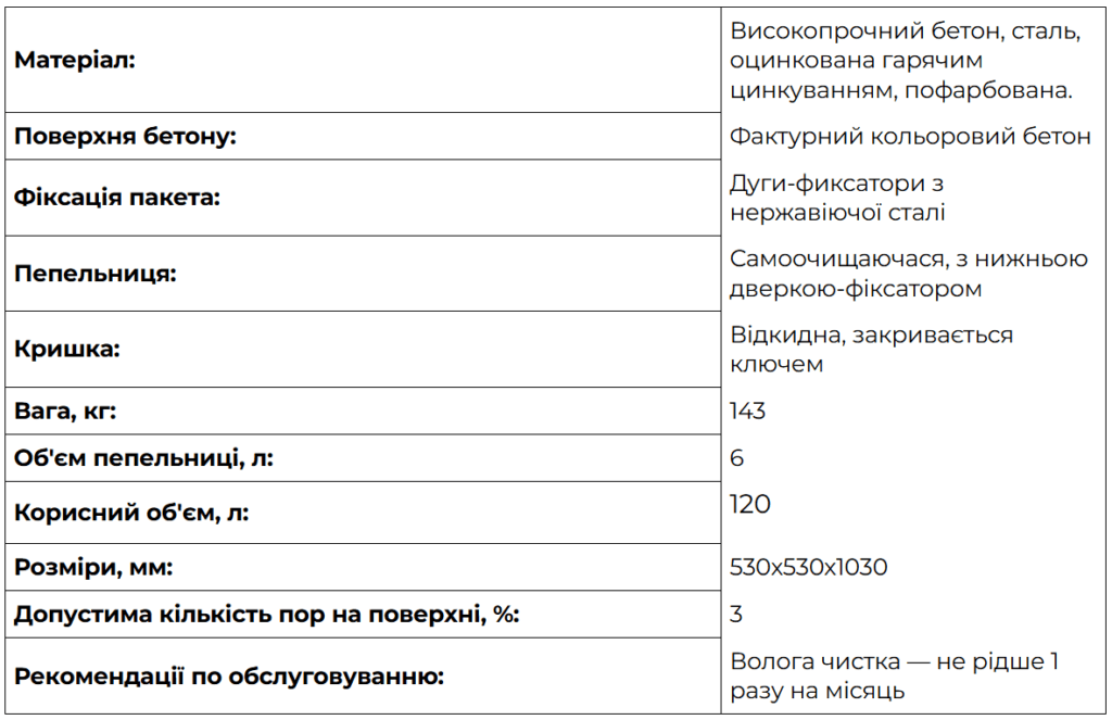 Технічні параметри та кольори