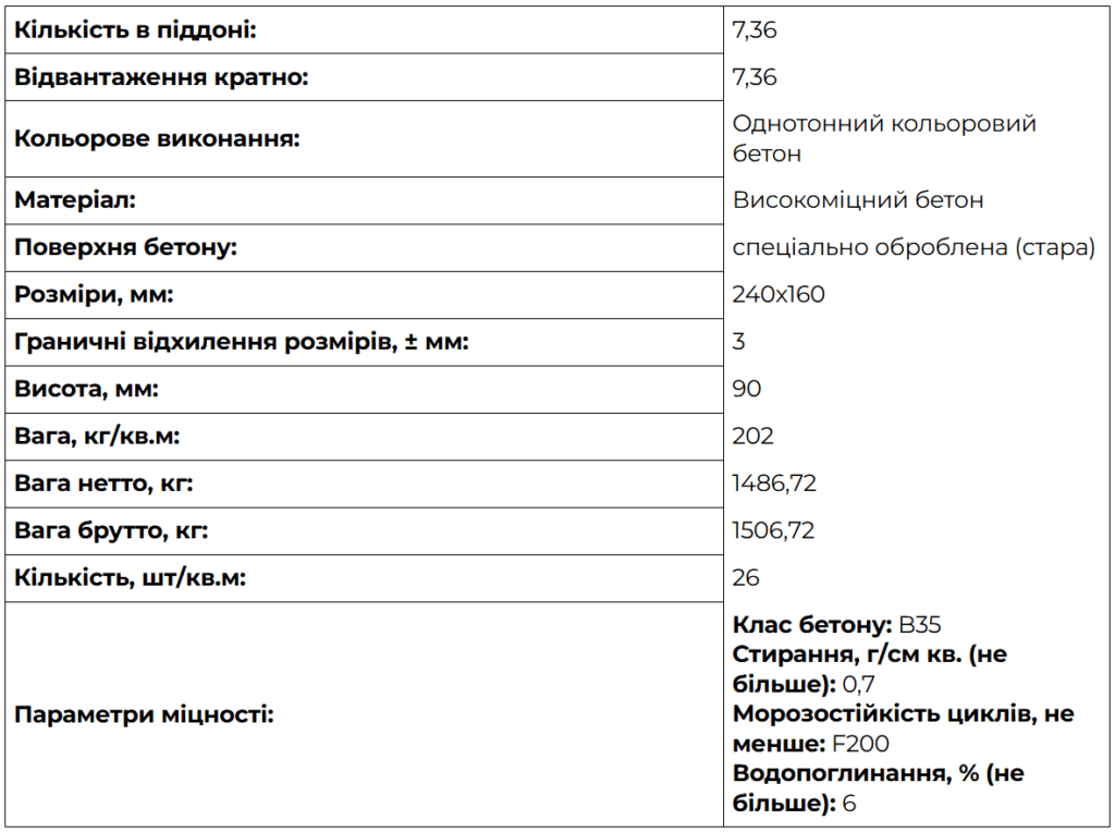 Технічні параметри та кольори