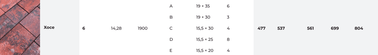 Бруківка Хосе включає 5 елементів різної форми, які додадуть екстер’єру незвичної динаміки. А зробити простір яскравішим допоможе широка палітра доступних відтінків. Є класичні чорні та сірі тони, а також яскрава лінійка Колор Мікс. Така варіативність розширює можливості ландшафтного дизайну майже до безкінечності. Все залежить від вашого польоту фантазії!