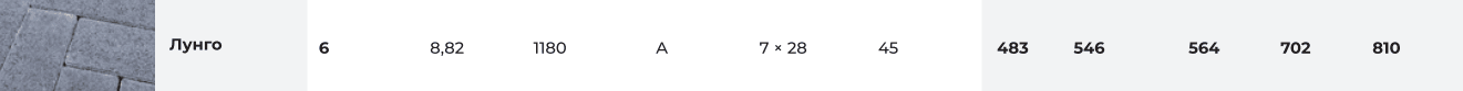 Оригінальна видовжена форма плитки і дала назву моделі, адже слово «lungo» — італійського походження і означає «довгий». Правильні геометричні форми та видовжений дизайн роблять таку бруківку практично універсальною, адже її можна вкладати на ділянках неправильної форми, або на вузьких алеях та садових доріжках. Саме тому, Лунго часто купують для замощування подвір’я навколо заміських будинків. Дизайн цієї плитки створює відчуття спокою і затишку.