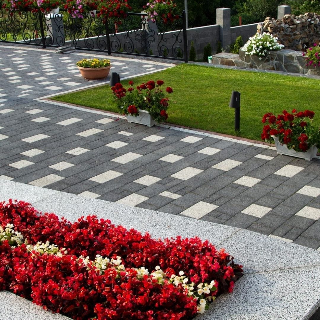 В комплект бруківки Гармонія входять по два прямокутні та квадратні елементи різних розмірів, що робить її одним із найбільш універсальним видом. Наявність чотирьох елементів відкриває багато варіантів замощення, а простота форм робить процес планування візерунків легким та захоплюючим. Вдалим буде використання кількох кольорів та повторюваних елементів у схемі укладання.