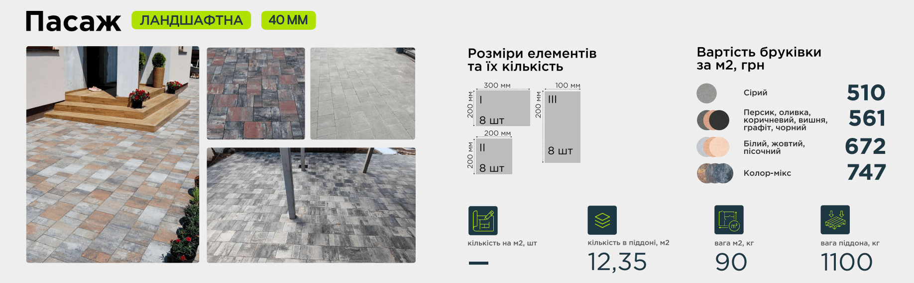 Гармонійно поєднані кольори дозволяють реалізувати індивідуальні ідеї оформлення. Пасаж вражає контрастом своїх кольорів, створених за технологією Колор-мікс, з дуже природними відтінками.
