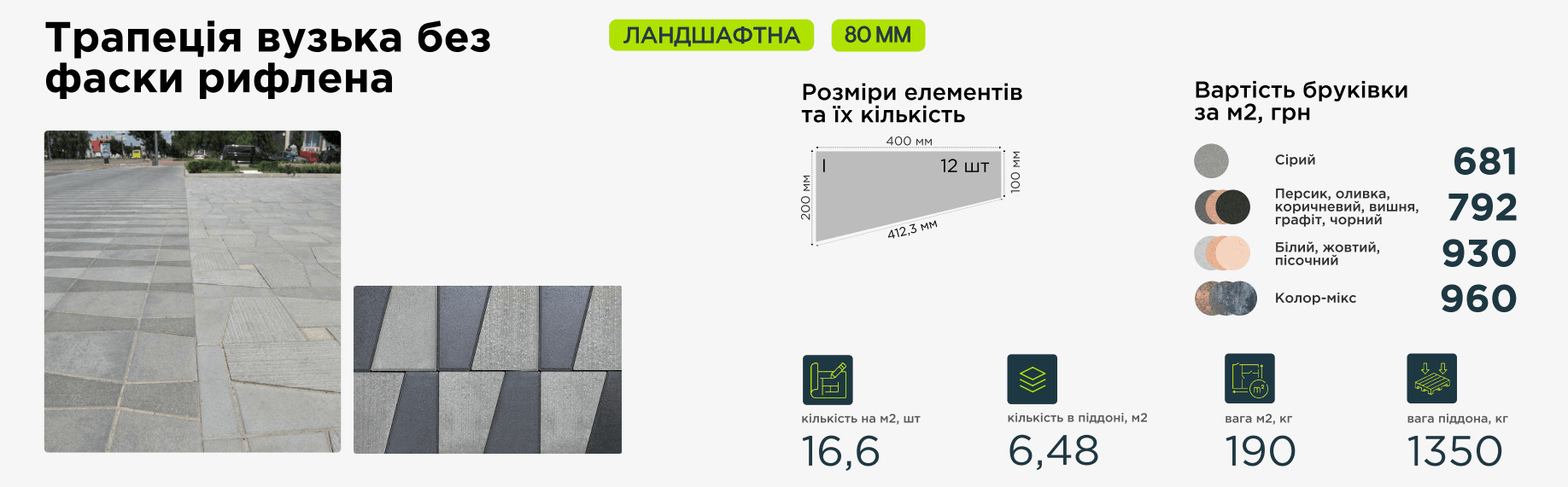 Трапеція без фаски рифлена — має фактурну поверхню, певний візерунок, який і робить плитку унікальною.
